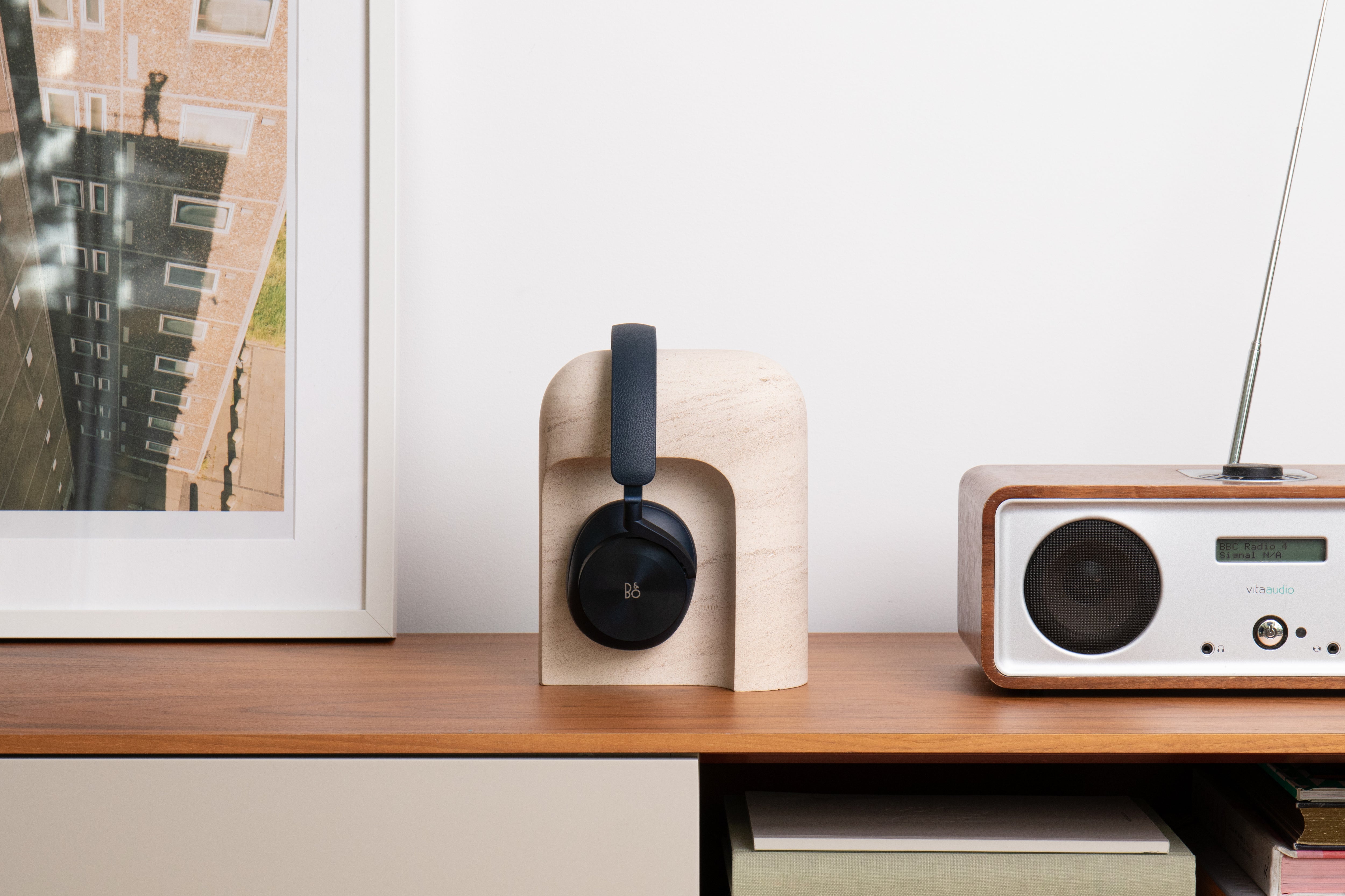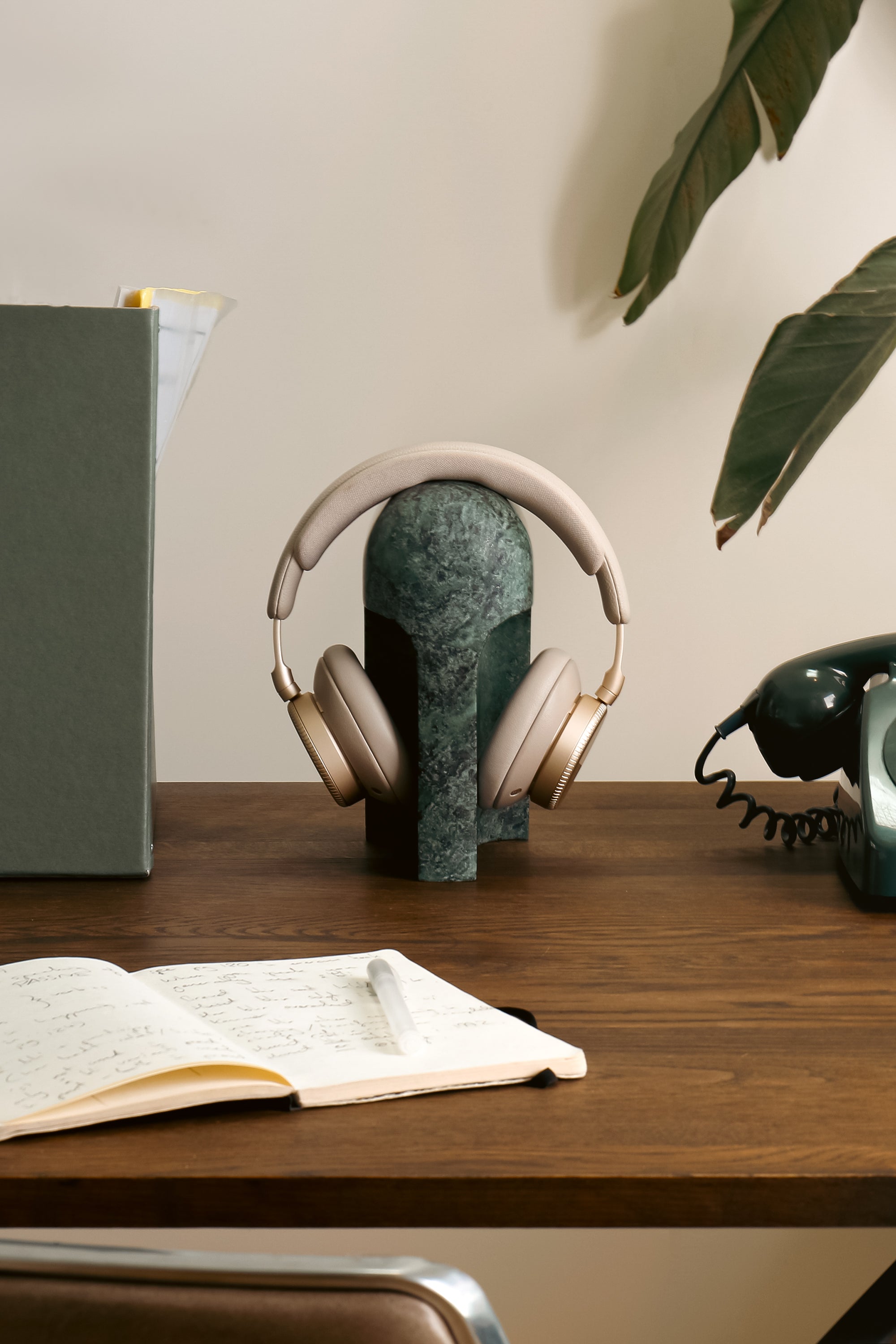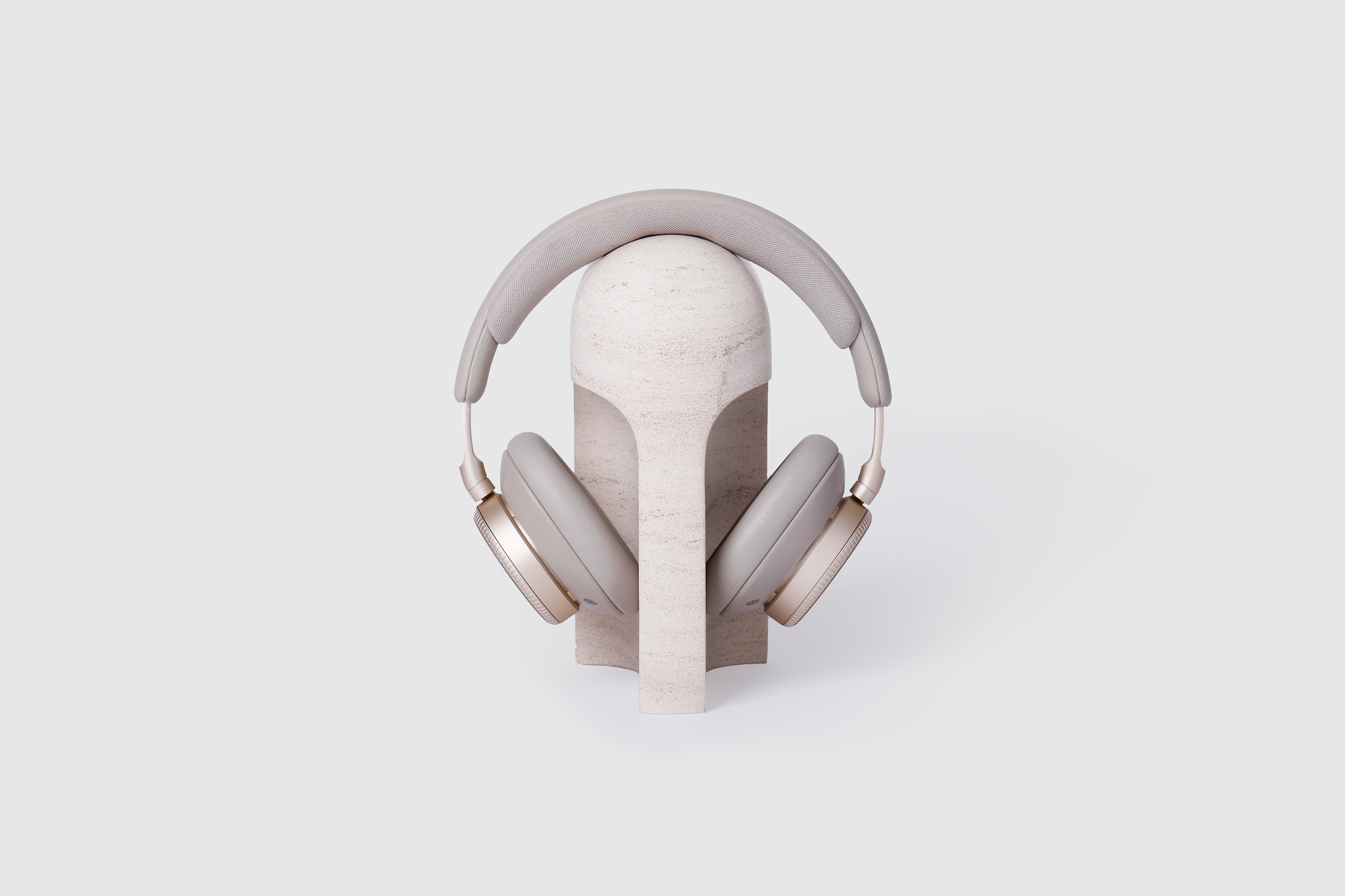 Arco is a headphone stand designed to feel complete even when not in use. Its smooth, continuous arc provides a gentle resting point for headphones and when without headphones it reads as an autonomous object, adding subtle presence to the space. Refined in proportion and minimal in detail, Arco integrates naturally into both home and office environments. The two stone stands bring character to any room with their solid, calm presence.